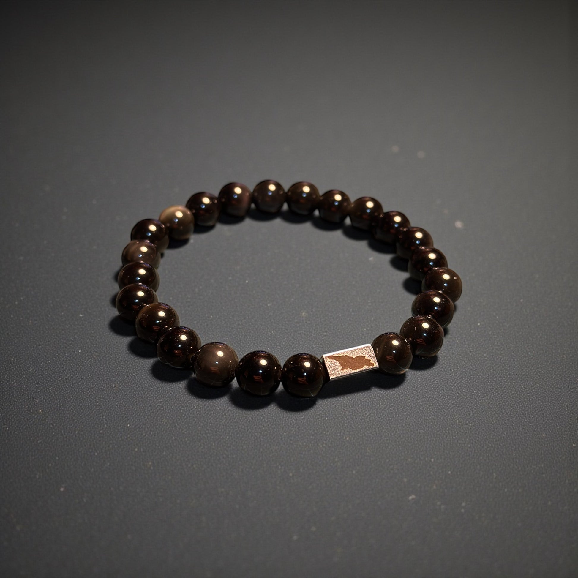 Handcrafted from high-quality 6mm Natural Amethyst beads, this piece features a central Stainless Steel bead meticulously engraved with the map of Georgia.